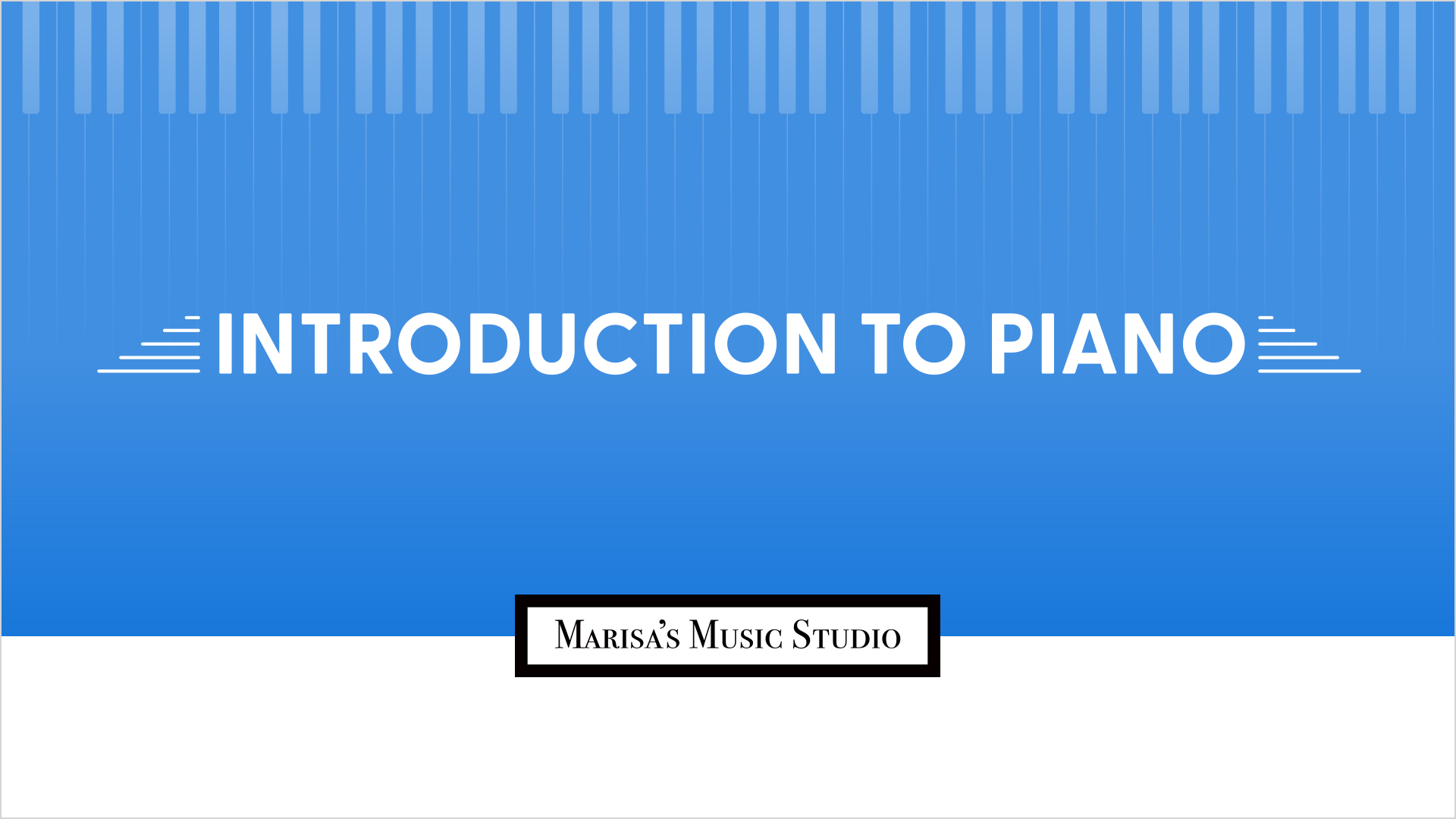 In this introductory online course, you will learn the basics of the piano keyboard, note names, hand positions and finger numbers, note values and rhythm, and more! By the end of the course, you will be able to play songs with both hands together, applying the knowledge gained of piano theory and technique. Included with the course is nearly two hours of on-demand video lessons, a comprehensive lesson book, quizzes and activities that help reinforce concepts learned. These tools successfully equip students for later courses that expand into next concepts, including how to read notes on the staff. (Note: this course does not introduce the music staff or staff notation, but rather the helpful basics that come before learning the staff).